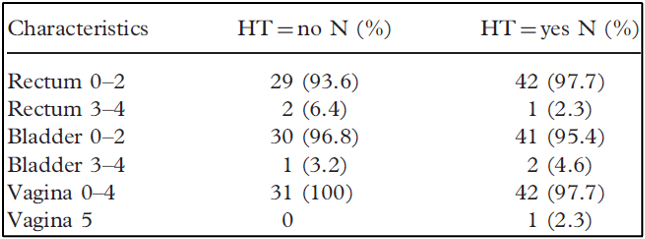 לא היה הבדל משמעותי ברעילות מאוחרת בין קבוצת הברכיתרפיה לבין קבוצת הברכיתרפיה בשילוב עם היפרתרמיה, p = 0.89. השפעות מאוחרות של הטיפול נתונות בטבלה 2.