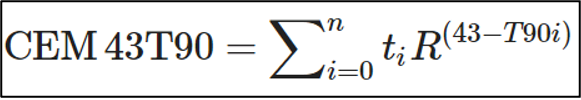 כאשר הטמפרטורה גבוהה מ-43 מעלות צלזיוס, R = 0.5. כאשר הטמפרטורה נמוכה מ- מעלות צלזיוס 43, R = 0.25. בפרוטוקול זה, ti הוא מרווח הזמן של ה-ith של הדגימה (ti = 1.0 min). טמפרטורות העולות על ה-T90 של נקודות המדידה התוך-רקטליות במהלך דקת ה-ith הוגדרו כ-T90i. לאחר מכן השתמשו החוקרים ב-CEM43T90 כדי להמיר כל T90i לזמן שווה ערך ב-43 מעלות צלזיוס, ואלה נוספו לאורך כל משך הטיפול של "n" דקות.